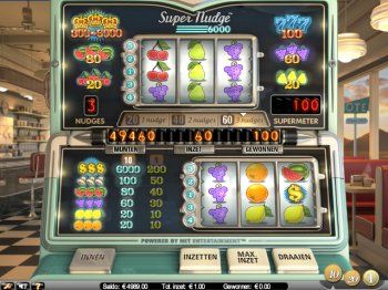 De Super Nudge 6000 gokkast heeft 2×3 rollen en 5 winlijnen. Bij een inzet van 10, worden alle 5 de winlijnen geactiveerd, en kun je kiezen om je winst te innen, of de supermeter modus te spelen. Maximale inzet is vereist om de supermeter modus te kunnen spelen. Je kunt 20, 40 of 60 munten inzetten in supermeter modus. Alle 5 de winlijnen zijn actief op de gekozen muntwaarde. Je kunt maximaal 3 nudges bij de supernudge 6000 krijgen. Speel nu deze geweldige casino slot.